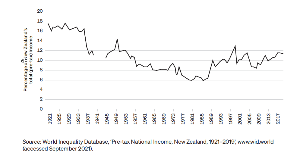 There is no long term data on post-tax income inequality, as the relevant surveys only began in the early 1980s, but data reported to the Inland Revenue reveals pre-tax income inequality dating back to the 1920s.